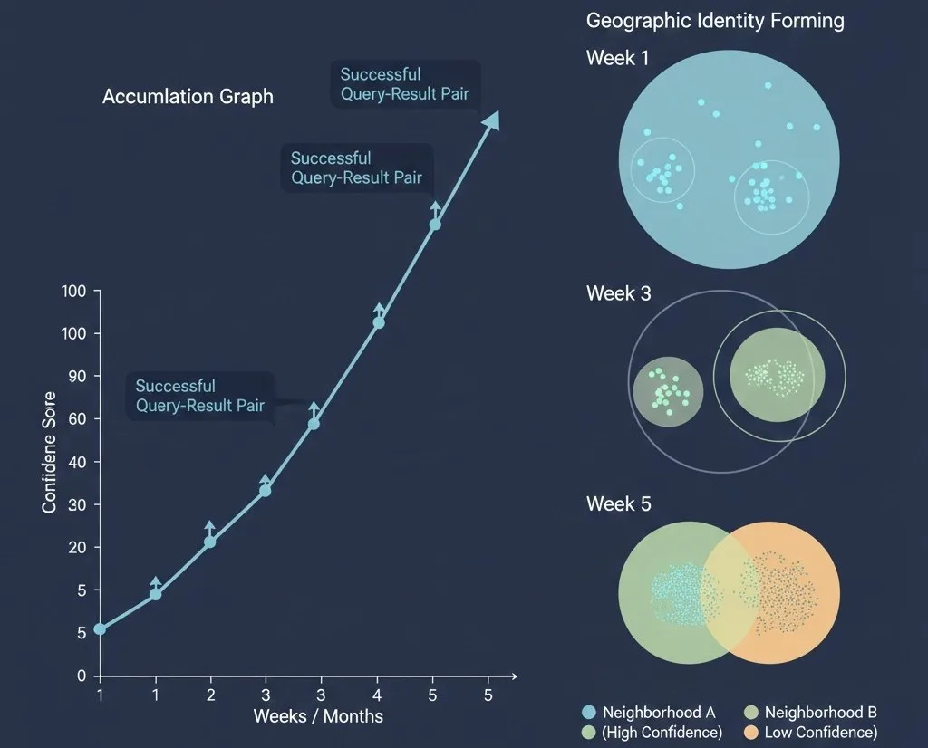 That confidence is not recalculated fresh for every search. It is accumulated over time. The system asks a simple question: Have I seen enough evidence that this business reliably satisfies this kind of query from this kind of location? If the answer is yes, eligibility is granted. If the answer is uncertain, eligibility is withheld. The decision is fast because the learning happened slowly.